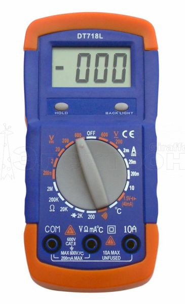 Мультиметр DT718L имеет ЖК-дисплей разрядностью 3 1/2 (макс. значение - 1999).